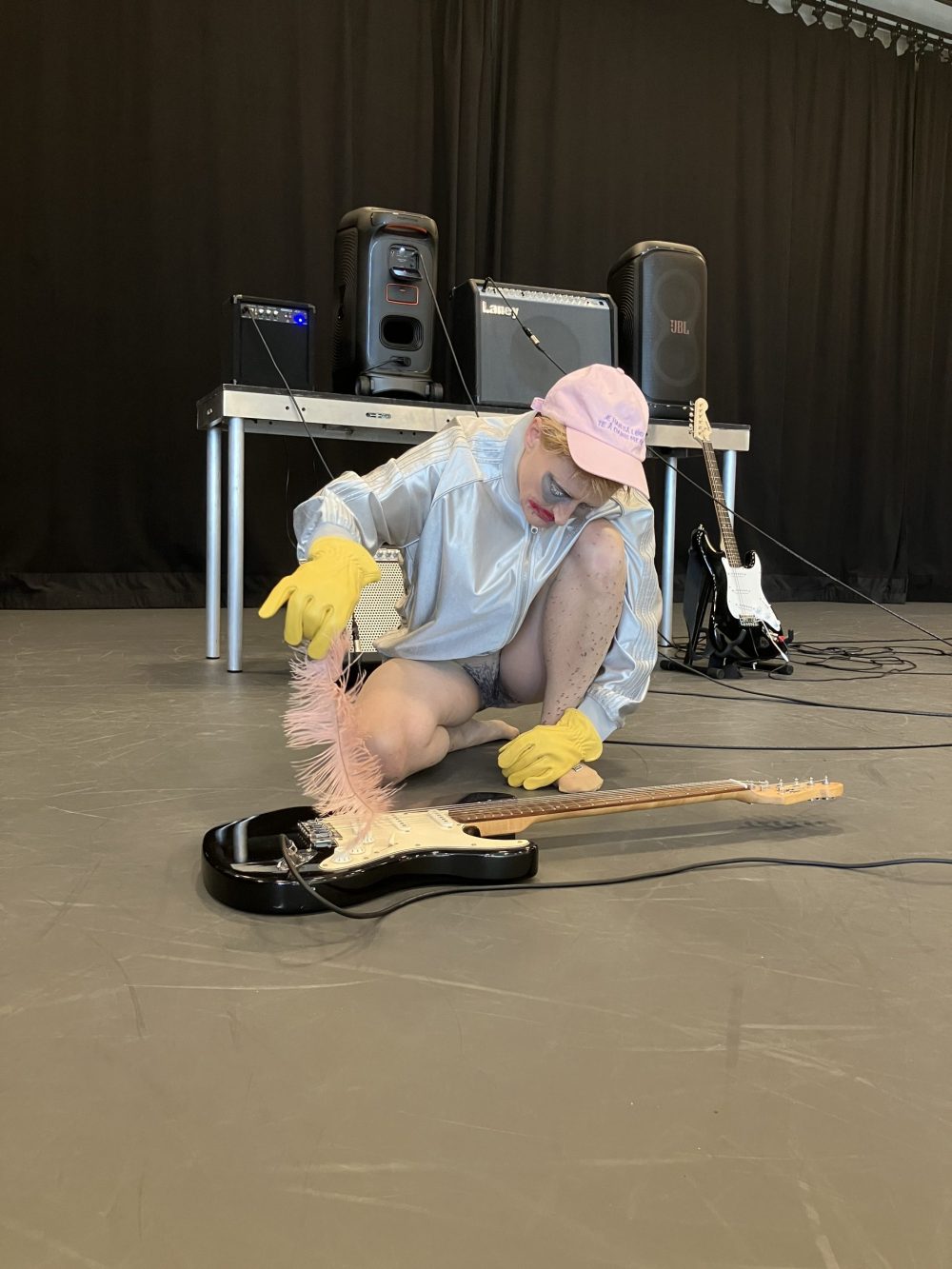 The choreography is minimal, sculptural, and concept-driven. Movement emerges from the body’s relationship to the guitar. Recurring gestures, such as stroking, rubbing, gliding, and strumming, produce resistance, vibration, and presence and blur the boundaries between instrumental play and embodied pleasure, exploring sound as both physical and affective material.